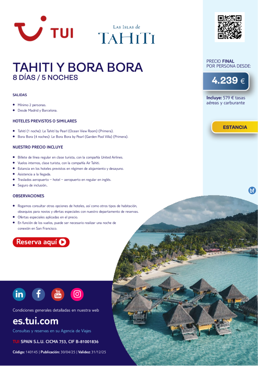 Tahití y Bora Bora. 8 días / 5 noches. Salidas desde MAD y BCN desde 4.239 €