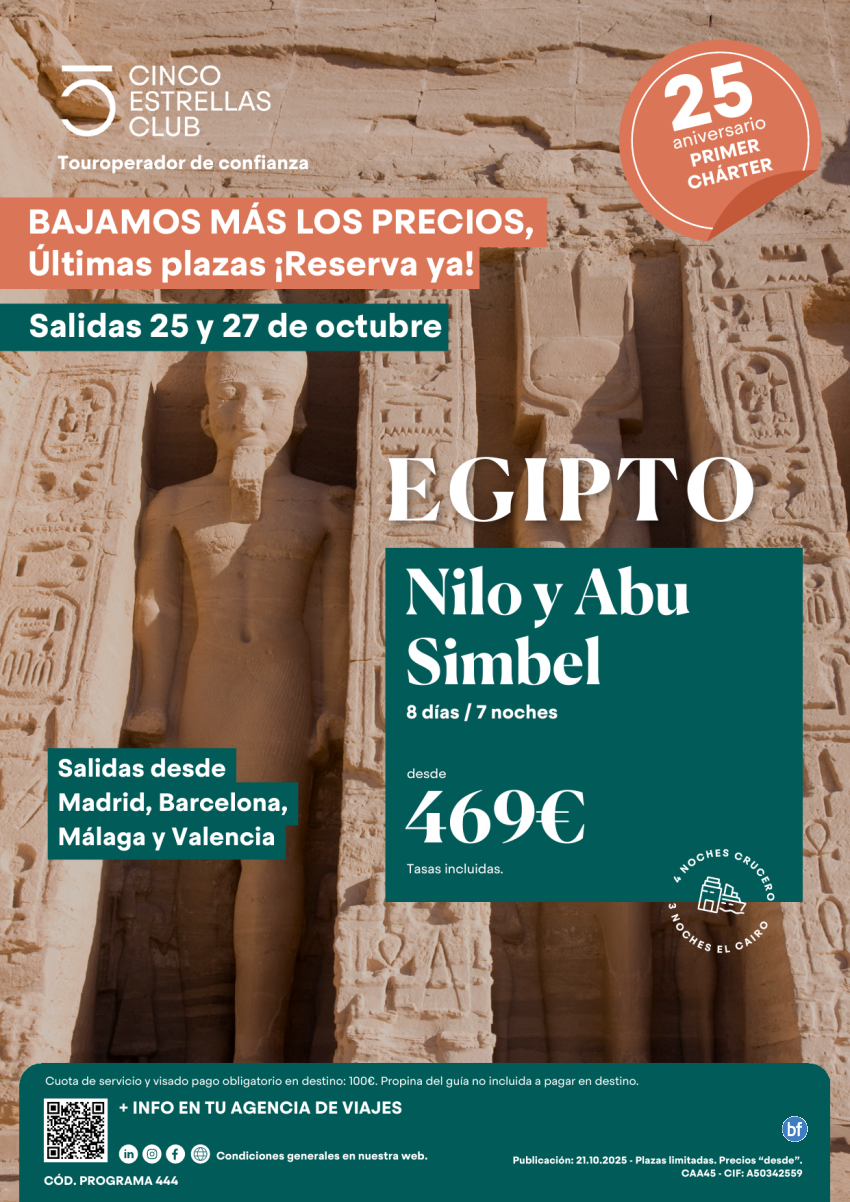 Últimas Plazas | Nilo y Abu Simbel 8ds/7n dsd 469€ sal 25 y 27 de octubre desde Mad,Bcn, Agp,Vlc